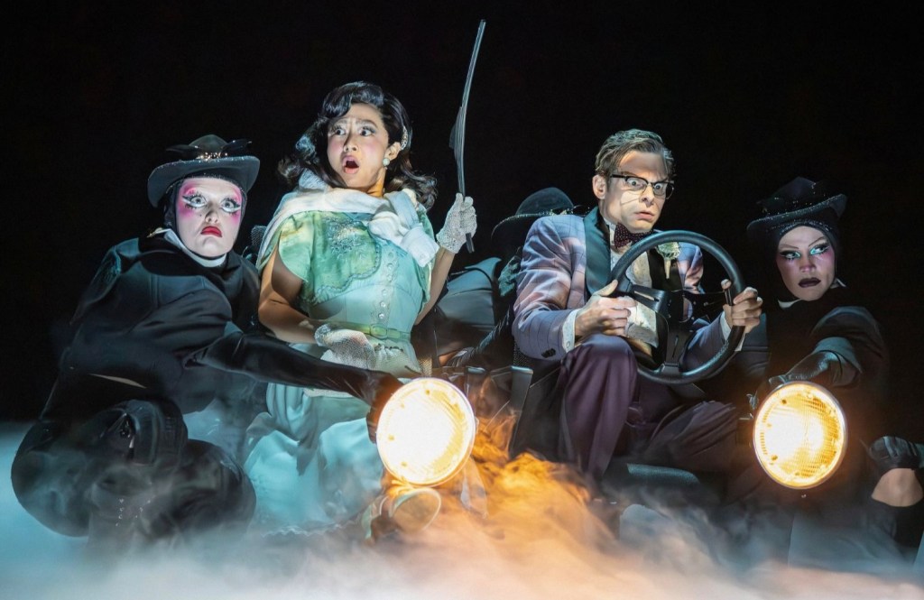 The musical, like the first season of the series (which I have not seen), follows a bickering couple, Melissa and Josh, who get lost in the woods, traipse across a magical footbridge, and wind up trapped, until they can find true love, in the town of Schmigadoon – where life is a musical. (Let us bypass a formal account of the characters and plot.) The basic premise is not dissimilar to that of the 1973 musical Smith, and it might have proven profitable – if, among other things, Paul and Gattelli had developed said premise with a clear point of view, fleshing out the particulars of their piece, including the world, with coherence, continuity, and specifics, and if, among other things, Paul and Gattelli had an actual understanding of the art form they are purporting to affectionately rib. But they did not and evidently do not.